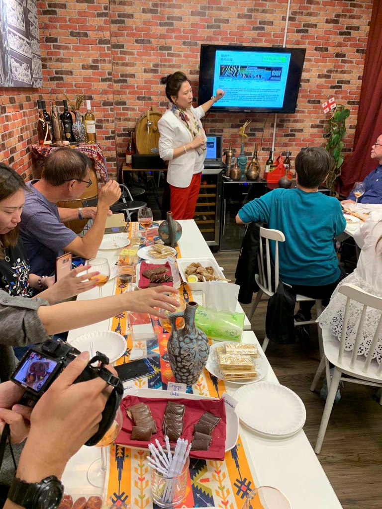 黃靜綺May Wong是格魯吉亞文化協會的發言人,是正真酒業的創辦人兼CEO,七年前發展這個葡萄酒生意的時候,正正是她的人生低潮,不過她沒有改變信念,依然相信如果要顧客喜歡格魯吉亞葡萄酒,關鍵是要令他們欣賞多姿多彩的格魯吉亞文化,所以她努力將這個國家的文化介紹給大家認識。「飲食文化特點是食材豐富,保持原生態。當地居民喜歡吃豬肉、牛肉和羊肉,全都是純天然飼養,沒有添加。喜歡用紅石榴做調味和點綴。格魯吉亞位於黑海沿岸,黑海雖然海產並不豐富,但魚蝦貝類也是非常新鮮的。格魯吉亞有著豐富的礦泉水資源。山泉水經過山脈的層層過濾,味道清甜含有豐富的礦物質,製作成含氣礦泉水,是他們國宴的飲料。」